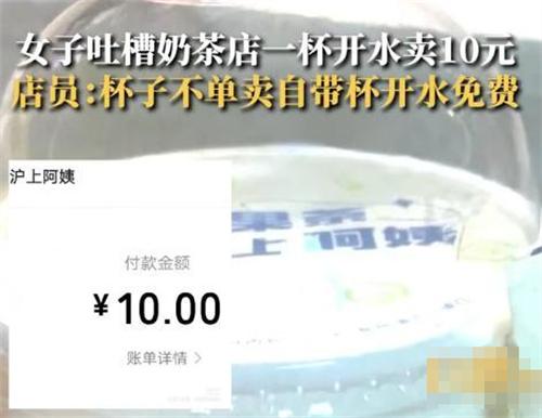 7月2日山東威海一位女子吐槽滬上阿姨一杯白開水賣10元的事件,引起了網友的關注。據當事人介紹,自己逛街時候感到肚子疼,就到滬上阿姨想要買一杯熱水,店員卻表示即使是白開水也要收一杯奶茶錢。