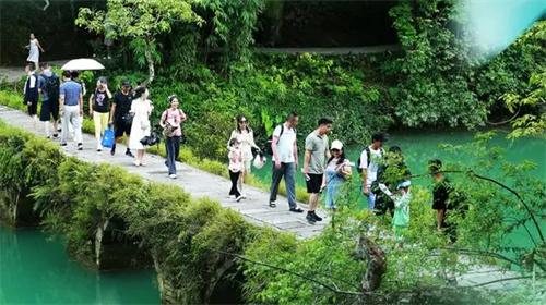 在貴州省荔枝波縣的小七孔景區,你會發現有很多游客在這個炎炎的夏季里面穿著清涼的在景區內游玩,來到這個地方進行游玩時,你會身處在綠色的大自然里,不僅會為你帶來良好的心情,同時在旅游時也會讓你看到各種舒適你的景色。
