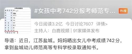 江蘇鹽城的一名女孩中考考了742分的成績,報考師范專科學校,引起了許多爭議。這一起事件引發公眾對于教育制度還有職業選擇的討論與思考,可以從多個方面去評價這件事情。我知道每個人都有選擇自己職業和興趣的權利,無論是報考師范專科還是其他任何職業,都需要尊重個體的選擇和意愿。這名女孩選擇報考師范專科學校,有可能是女孩對教育工作有著極為濃厚的熱愛和興趣,任何職業的選擇只要符合本人的興趣和能力,就應該得到尊重與支持。