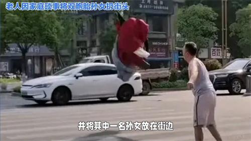 根據網友在7月10日上午發布的視頻爆料出兒子和兒媳婦吵架,爺爺直接把雙胞胎孫女扔在馬路中間,這位網友發布兩段現場的視頻,有一段視頻的畫面顯示看起來一兩個月大的嬰兒直接被放在街頭的樹蔭下,后來畫面顯示兩名嬰兒被別人抱在懷里,這個期間懷疑這對雙胞胎孩子爺爺抱著衣物扔在馬路上的斑馬線。有一位路人表示幸虧自己反應夠快,在馬路攔住車,將孩子抱回來,否則孩子真的會涉及生命的危險。