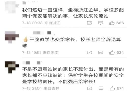最近,有網友在人民網留言板中留言,反映河南鄭州一小學強制家長輪流站崗,而家長則需要請一天假。網友留言稱河南鄭州惠濟區綠源實驗小學強制家長輪流在學校值班是不可以缺崗的安排,站崗的時間正好是上班的時間點,這也就演變成了家長需要請一天假去站崗。