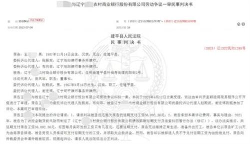 裁判文書網中披露一份有關遼寧建平農商行勞動爭議的一審民事判決書,判決書中表明該行前任某支行副行長王某因為薪酬績效延遲支付的原因,每個月只有幾百元的工資,準備外出打工,卻被單位以曠工為理由辭退。