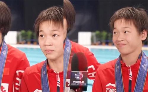 全紅嬋和陳芋汐的默契程度不僅表現在跳水時的動作上,心靈相通,也充分的展現出來。在比賽奪冠之后,全紅嬋秒變社恐,展現了可愛的一面,在鏡頭前非常緊張,眼神閃躲,特別的靦腆害羞,面對記者的提問,也只是簡短的進行回答,快速將采訪結束。