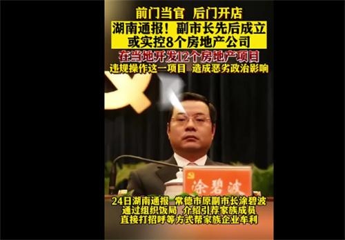 先后成立或者實際控股8個房地產公司,參與投資分紅獲得巨額利益,利用自己的職權之便存在違法違紀被移送檢察機關依法審查起訴。北京時間7月24號湖南省紀委監委發布了七起領導干部利用自己的職權之便,或者利用自己工作影響力為自己的親友牟取利益的典型案例。其中有一起就包括了常德市委原常委、市政府原副市長徐碧波為自己家族企業站臺,為自己親友謀取利益利用自己的職務之便提供幫助等問題。