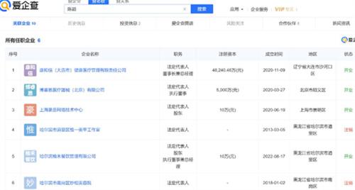 記者從國(guó)家企業(yè)信用信息公示系統(tǒng)查詢到,康和信集團(tuán)的法定代表人確實(shí)是陳穎,但企業(yè)信息查詢平臺(tái)顯示,陳穎還在其他的私人企業(yè)中擔(dān)任職務(wù)。根據(jù)愛企查顯示陳穎擔(dān)任職務(wù)的企業(yè)一共有6家,除了任職康和信集團(tuán)之外,還在博睿恩醫(yī)療器械、哈爾濱稚禾餐飲、上海豪岳網(wǎng)絡(luò)技術(shù)中心擔(dān)任職務(wù)。