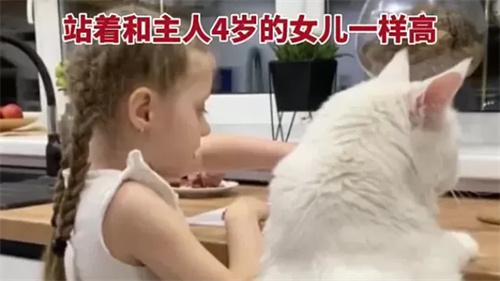 根據(jù)《太陽報(bào)》《紐約郵報(bào)》等相關(guān)媒體,在7月27日?qǐng)?bào)道,近日來自俄羅斯的尤利亞·米尼娜有一只特別大的寵物貓,長(zhǎng)的和四歲兒童一樣高。米尼娜聲稱自己的貓叫做凱菲爾,是世界上最大的貓,在社交平臺(tái)當(dāng)中發(fā)布視頻,顯示米尼娜在廚房做菜時(shí),凱菲爾就直起身子,站起來與米尼娜4歲女兒一樣高。