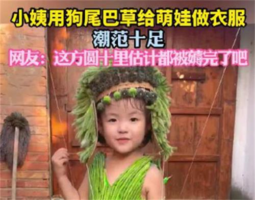 近日,河北一位女子用狗尾巴草給孩子做衣服的視頻引起了網友的關注。在視頻當中這位小女孩身穿用狗尾巴草做成的衣服,頭上還頂著狗尾巴草做成的頭飾,仿佛從草原當中走出的公主,引人側目。
