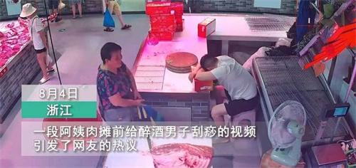8月4日,在我國浙江寧波的一個菜市場里面一位肉鋪的老板早早的就來到了自己的店面工作。由于他自己在前一天晚上喝了太多的酒,便感覺自己的腦袋暈乎乎的,所以就想趴在案臺上面睡會兒覺,一位熱心的買菜阿姨路過的時候,以為這個老板是由于天氣太熱了導致中暑,出于好心的情況下,阿姨拿了一枚一元錢的硬幣,于是便為這位老板進行了刮痧,希望通過這種方式能夠將他喚醒。