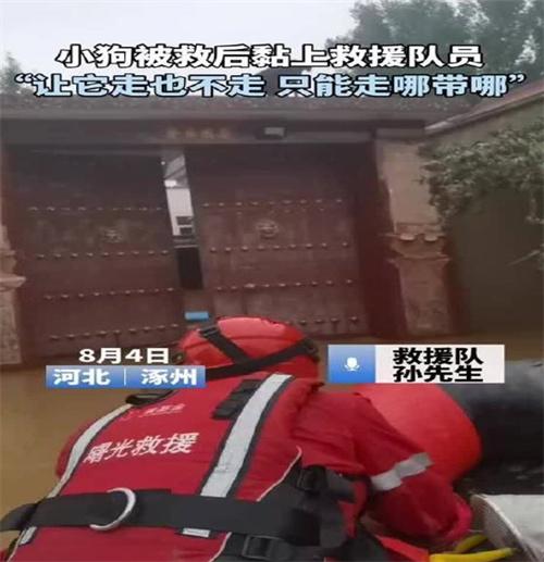 北京時間8月5日,河北涿州發生了一件十分暖心的救援故事,一名救援隊員在搜救的過程當中救下了居民養的一只小狗,把小狗救下來以后,這只小狗似乎是認定的消防隊員想要感激他的救命之恩。于是就一直跟著救援人員走來走去,救援人員想要讓小狗去到一個安全的地方,不要妨礙他自己進行下一個救援任務,但小狗似乎不想要走,便一直跟在救援人員身邊。