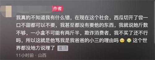 不久前山西太原的一名女生發視頻稱自己與同伴在太原市的夜市中一家店鋪想要購買水果撈,在購買時店家告知一共47元,女生由于價格過高懷疑存在缺斤短兩,拒絕購買之后被店家罵你是小三吧。女生因為價格比較高,所以不想買了,之后店家多個人攔著女生不讓女生走,在此期間還多次辱罵女生,在女生父親來的時候,還對其父親說是你的小三吧。