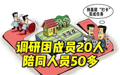 人民日報發(fā)表評論表示各級黨組織和黨員干部當(dāng)下忙著深入基層進(jìn)行調(diào)查研究,但是出現(xiàn)了個別干部走馬觀花,蜻蜓點水,淺嘗輒止對矛盾調(diào)而不言,對問題避而不見等問題。一個20人的調(diào)研團(tuán)有50多個人陪同,聲勢浩大只走過場。