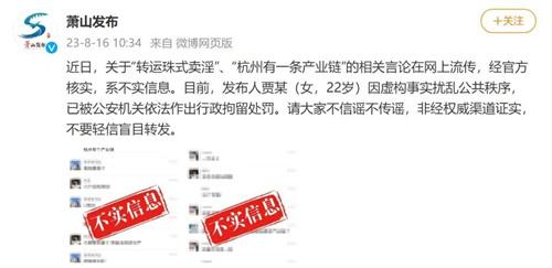 近日,在網(wǎng)絡(luò)上流傳起了“轉(zhuǎn)運(yùn)珠市賣淫”以及“杭州有一條相關(guān)的產(chǎn)業(yè)鏈”,引起了社會各界的關(guān)注和討論。不過經(jīng)過官方的審核,這些言論都是不實(shí)信息,對于群眾來講需要保持客觀冷靜的態(tài)度,不要信謠言,也不要傳謠言,這樣就會避免對社會秩序造成不必要的影響。