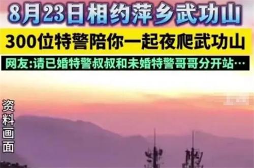 武功山市監(jiān)局局長還透露,本次拉練活動參與者將全部都是真正的特警,而且還會把已婚和未婚的特警區(qū)別開,已婚的特警會戴上帽子,未婚的則不戴,這一安排也響應了此前網(wǎng)友的呼聲。有網(wǎng)友表示特警一直是自己向往的職業(yè),對從事特警行業(yè)的男生也一直懷有好感,希望通過本次活動可以認識到自己命中注定的那個人。還有人表示想要來到武功山為來自自己家鄉(xiāng)的戰(zhàn)隊加油,希望他們可以在本次拉練當中取得好成績。