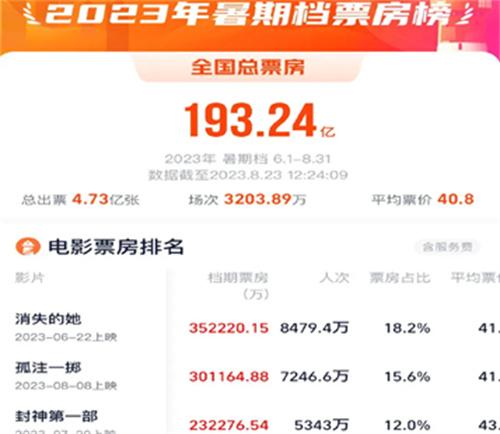電影《孤注一擲》的票房已經突破人民幣30億,在此之前《電影消失的她》票房也已突破30億,在中國電影史上首次出現暑期檔兩部影片突破30億。這兩部影片獲得成功充分的顯示出了當前中國市場擁有非常大的潛力。同時也顯示出這兩部電影,在藝術表達上和選材上都擁有著獨特的魅力,為電影行業樹立了新的標桿。