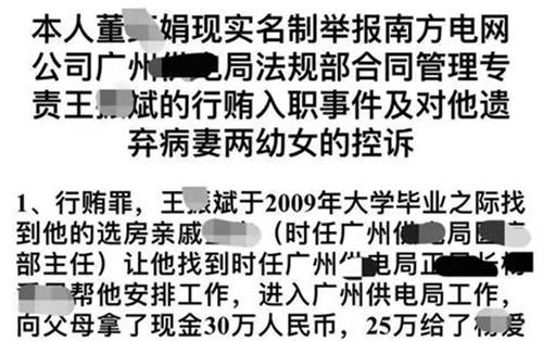 日前有媒體對網絡上“廣州供電局員工遭妻子舉報行賄30萬入職并遺棄病妻幼女”的事件進行了報道,這則消息也引起了人們的關注。8月22日有人發現相關信息,現在有關單位已經成立了核查組進行核查。