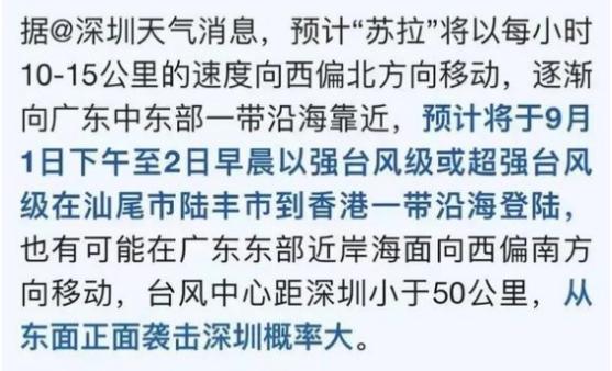 3、臺風蘇拉索帶來的影響無法進行詳細估計,請廣大市民一定要積極關注深圳市氣象臺所發布的預警信息,也可以打開深圳天氣微博或者是APP等渠道,去查看深圳市的氣象具體情況。
