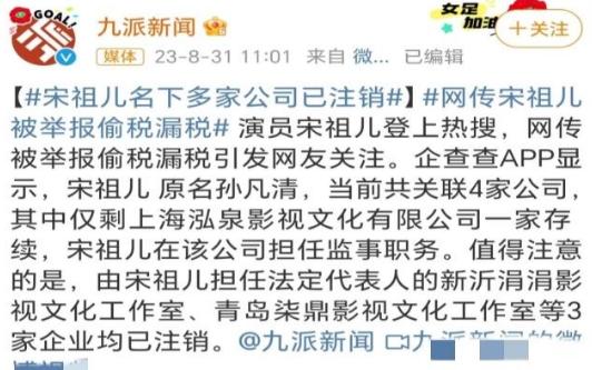 在北京時間的8月31日,曾為宋祖兒工作的工作人員實名對宋祖兒進行了舉報,稱宋祖兒偷稅漏稅,4,500萬元這一事情引發了外界的高度熱議,而國家稅務局的官方工作人員也直接表示宋祖兒偷稅漏稅這一件事情我們將會高度重視,后續也將會宋祖兒進行稅務稽查,雖然外界對這件事情的討論聲極大,而稅務局對這件事情也給出了回應,但是宋祖兒本人以及他的團隊對該事件并沒有給出回應。
