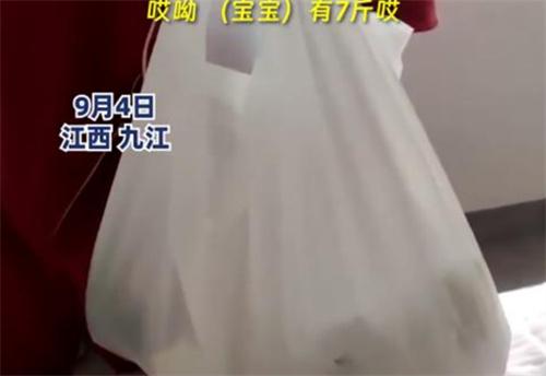 9月6日,江西省九江市居住的邱女士發布了一條視頻,這條視頻也引發了網友們的擔憂。邱女士在提到這條視頻時表示孩子的爸爸在孩子出生14天之后,想要稱一稱孩子有沒有長胖,由于家里又沒有可以去稱孩子體重的工具,便找來了塑料袋,直接將孩子放到塑料袋里面去給孩子稱重。