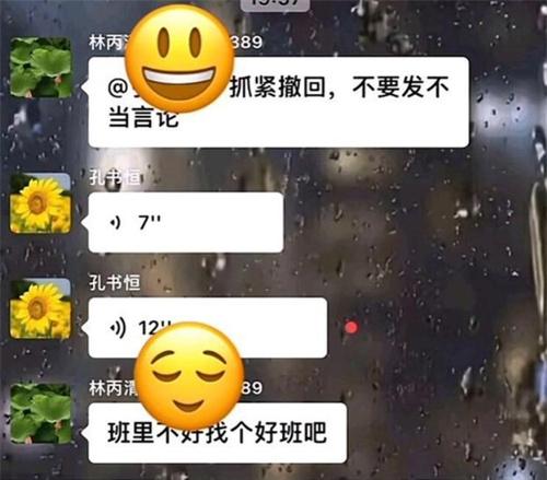 令這位家長沒有想到的是,自己只是想要和侄女對孩子的班級進(jìn)行吐槽一下,竟然直接將吐槽語音發(fā)布到了孩子所在的班級群里面,雖然老師在聽到這條語音內(nèi)容之后,也立刻對這名學(xué)生的家長進(jìn)行了提醒,但相信這條語音內(nèi)容不僅被老師,其他家長聽到這條語音內(nèi)容,從旁觀者的角度都可以發(fā)現(xiàn),這位家長所發(fā)送的語音不僅直接得罪了孩子的老師,同時也得罪了孩子的同學(xué)以及同學(xué)的家長,從這件事情的相關(guān)視頻以及相關(guān)圖片也可以發(fā)現(xiàn),這位家長在最開始時是對孩子所在班級進(jìn)行了抱怨,但是當(dāng)老師提醒之后,這位家長有些發(fā)懵,最后這位家長又萬分的慌張,感覺這位家長在看到老師的提醒消息就已經(jīng)后悔了。