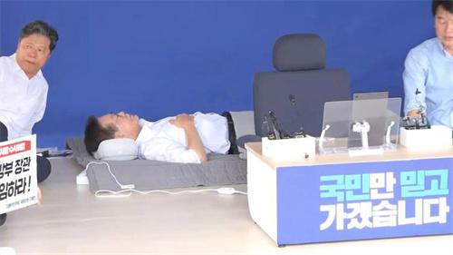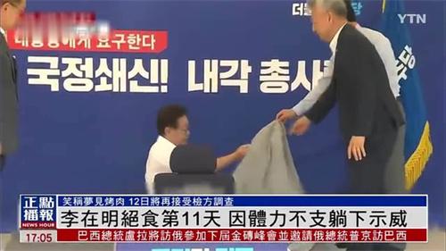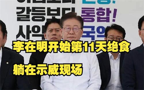 韓國9月10日的報道,李在明當天從國會主樓前靜坐示威,從帳篷內繼續(xù)絕食,絕食的第11天體力下降,選擇躺下示威,當時還有幾名民主黨議員前往探望。李在明笑著表示昨天自己還夢到了烤肉,由于李在明無限期的進行絕食,引發(fā)廣泛的關注,現(xiàn)在并沒有確定繼續(xù)要絕食到何時,用哪種方式結束,據(jù)共同民主黨首席權七勝接受采訪時表示現(xiàn)在李在明的體力已經大幅度下降,并沒有決定具體結束的時間。