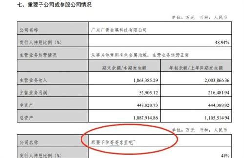 廣東省廣新控股集團有限公司近日公布的公司債券半年度報告,讓金融圈震動在這份報告中有一處錯誤。讓市場感到嘩然的是這份報告的第44頁標題是重要子公司或參股情況部分公司名稱被寫成了“要不然就住在哥哥家吧”,這樣低級的錯誤出現在這樣嚴肅的報告中,引發了市場的討論和關注。