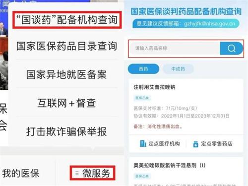 “國談藥”可以到定點的零售藥店或者是定點醫(yī)療機構購買。這兩個渠道都提供國家醫(yī)保談判藥品,而且可以用醫(yī)保直接進行支付結算。國家醫(yī)保局為了進一步的給參保患者使用國談藥提供便利,專門在微信公眾號中開通了國談藥配備機構查詢的功能。用戶可以通過這一功能查詢國談藥的配備機構。只需進入查詢頁面之后將國談藥的名稱輸入,點擊搜索按鈕,就能夠快速的看到,協(xié)議有效期,醫(yī)保支付標準等相關信息。通過點擊定點零售藥店,或者是定點醫(yī)療機構這兩個按鈕可以快速的查詢所輸入的藥品,各個地區(qū)的配置情況和銷售情況,能夠快速的找到可以購買到這種藥品的地點。
