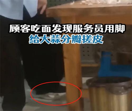 近日,有網(wǎng)友在承德市一家重慶小面店就餐時(shí)發(fā)現(xiàn)幾名服務(wù)員用腳踩大蒜,然后再對(duì)大蒜扒皮,網(wǎng)友覺得這一幕非常震驚,并且把它拍攝了下來(lái),發(fā)送到網(wǎng)上,希望引起大家的關(guān)注。