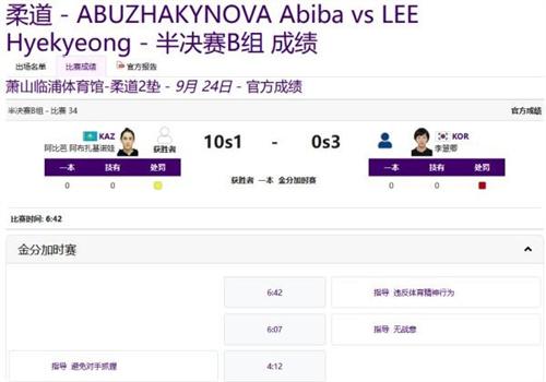 9月24日,杭州亞運(yùn)會(huì)柔道女子48公斤級(jí)半決賽比賽場上韓國選手被打下場。杭州亞運(yùn)會(huì)柔道女子48公斤級(jí)半決賽舉行地點(diǎn)是蕭山臨浦體育館,半決賽b組的比賽場上韓國選手掌鍋對(duì)手的一幕引起了眾多網(wǎng)友的關(guān)注,韓國選手直接被判罰下場。在視頻中,能夠看到韓國選手李慧卿與哈薩克斯坦選手阿比芭·阿布扎基諾娃對(duì)決過程中直接用手扇到對(duì)方的臉。直接造成對(duì)方不適,發(fā)生這一幕之后,裁判立即停止比賽,最后判定李慧卿違反體育精神行為犯規(guī)。