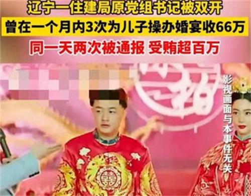 近日,遼寧某住建局原黨委組書記被遼寧省紀(jì)委通報(bào)雙開,曾經(jīng)一個(gè)月內(nèi)為兒子辦過三次婚宴,所收到的禮金數(shù)多達(dá)人民幣66萬余元。