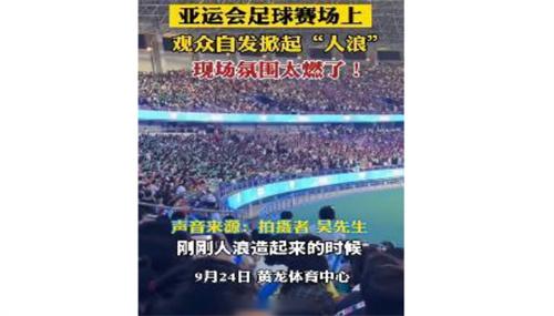 9月24日,杭州黃龍體育中心舉行的亞運足球比賽現場,觀眾自發掀起人浪讓觀看氛圍瞬間燃爆。根據網上拍攝的視頻可以看到現場的觀眾全部都是屬于自發掀起人浪,沒有事先排練配合的非常默契。人浪燥掀起來的時候動作整齊劃一,做到這種地步非常的不容易。