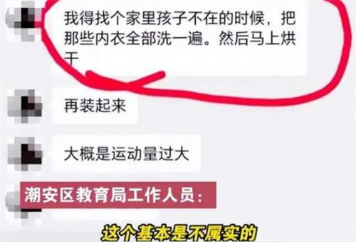據網絡上曝光的內容表示該校校長家屬發現兩人的不雅聊天記錄之后,將兩人的聊天記錄發到了潮安區第十一政協群。根據網傳的記錄,可以看出聊天記錄中包括內衣、生理期、抱抱睡、肚兜等文字。聊天雙方是廣東潮州潮安區某小學校長徐某某,與另外一個小學的副校長楊某。潮安區紀委的工作人員于9月25日對此事進行回應表示涉事的女方實際上是某小學的政教主任,對于此事目前正在進行調查當中。寶安區教育局的工作人員對此進行回應,表示網絡上所傳的這些聊天記錄基本上都不是事實。