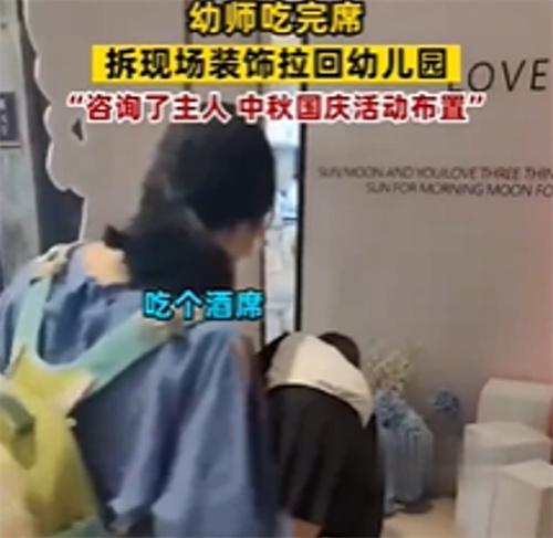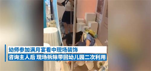 事后這一名幼師也針對(duì)網(wǎng)上的視頻作出了回應(yīng),她表示當(dāng)時(shí)在參加宴席的時(shí)候就看到宴席廳外面的裝飾非常的漂亮,有很多造型非常漂亮的氣球和板材。尤其是在得知這些裝飾品在酒席結(jié)束之后就沒(méi)了用處,就想到了幼兒園馬上就要舉辦中秋國(guó)慶節(jié)的活動(dòng),正好可以將這些材料二次利用。因此在宴會(huì)結(jié)束之后就詢問(wèn)了宴會(huì)主人這些氣球和板材還有沒(méi)有用得到回復(fù)是宴席結(jié)束之后,這些材料都要直接拆除。就開(kāi)始呼叫自己的同事一起幫助拆除搬運(yùn)。