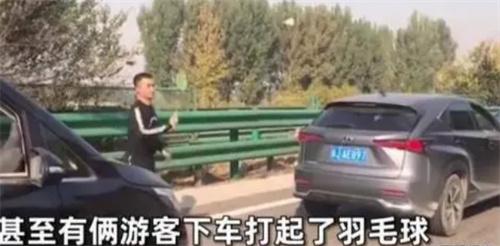 更讓人感到詫異的是,在車潮擁擠的情況下竟然還有人能夠下車打羽毛球,車上帶著自家寵物狗的乘客還在高速路上遛起了狗,這些情景簡直讓人感到忍俊不禁,很多人為了不在堵車中度過自己的饑餓時光,提前在服務區里準備了一些食材,通過插電的方式煮起了飯菜,一家人都圍在路邊享受高速路上的美食。