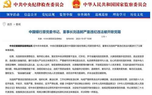 10月7日,根據(jù)中央紀(jì)委國(guó)家監(jiān)委網(wǎng)站消息,對(duì)中國(guó)銀行股份有限公司原黨委書記董事長(zhǎng)劉連舸涉嫌嚴(yán)重違法違紀(jì)問題,經(jīng)過(guò)中共中央批準(zhǔn),中國(guó)紀(jì)委國(guó)家監(jiān)委對(duì)其進(jìn)行立案審查調(diào)查,經(jīng)調(diào)查后獲悉,劉連舸喪失了理想和信念,背棄了黨員的初心使命,在落實(shí)中央決策部署方面打折扣不堅(jiān)決,大肆插手信貸項(xiàng)目,違法違規(guī)給企業(yè)發(fā)放貸款造成巨大的金融風(fēng)險(xiǎn),無(wú)視中央八項(xiàng)規(guī)定精神,違規(guī)收受他人禮品禮金,利用職務(wù)之便在他人貸款,融資與項(xiàng)目合作等方面謀取巨額利益。