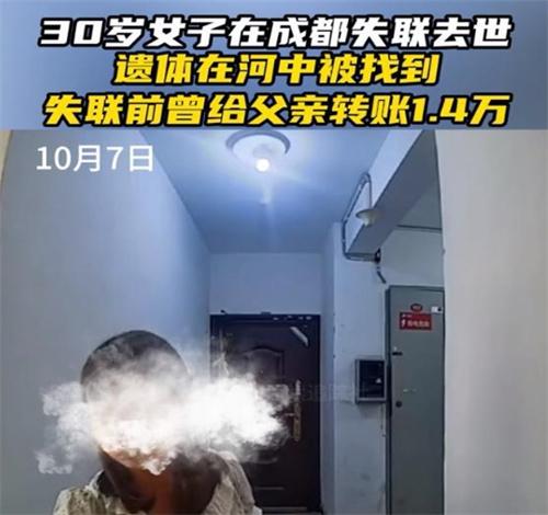 近日,在四川省成都市發(fā)生的一起失蹤案引發(fā)了社會(huì)各界的多方關(guān)注。一位30多歲的女子在和家人失聯(lián)半個(gè)月之后,在河面上發(fā)現(xiàn)了這名女子的遺體,就在這位女子死因引發(fā)多方猜測(cè)的時(shí)候,這位女子生前的各種行為也讓網(wǎng)友們感到匪夷所思。據(jù)悉,在這位女子失聯(lián)之前曾經(jīng)給自己的父親進(jìn)行過(guò)轉(zhuǎn)賬,而轉(zhuǎn)賬的金額為1.4萬(wàn)元。
