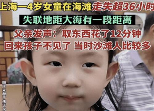 近期,上海一名4歲女童走失的信息引的很多人的關注。10月4日有一對夫婦在當天下午到派出所求助稱自己的女兒在上海浦東新區南匯新城海灘游玩的時候不見了。據孩子父親解釋自己當時帶著女兒在離海邊20米左右的沙灘玩耍,然后自己返回取手機時將女兒留在了沙灘上,但是取回手機之后,發現自己的女兒不見了,而女兒的漁網小桶還有鞋子都留在那里。浦東警方在次日同消防救援總隊以及厚天、藍天等六支救援隊伍展開了全方位搜索。組織人員對沙灘周圍的監控逐一排查,已經初步排除女童被他人帶走。