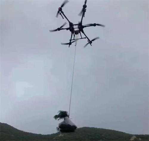 在對該項目的兩側山體進行林相改造時,所選擇的樹苗高度基本上都在兩米到三米之間,這些樹苗的直徑基本上都已經超過了10公分。在進行移栽時,所有的樹苗根部上都連接著土塊,一棵樹的重量已經達到了100兩斤左右,對于本次山體改造項目的工期時間非常緊張,這由于本項目里面的山體較為陡峭。如果想要使用人工去運輸樹苗的話,有著極大的難度,同時也將會對三體上現存的植物以及施工進度帶來影響,為了多方面考慮,最終選擇使用無人機在空中進行作業。
