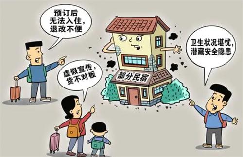 貨不對版、虛假宣傳稱民宿外面有湖景,江景,海景,內部裝修配套齊全等特別精美的網紅民宿,其實在現實生活中根本和網上宣傳的或不對版。民宿行業亂象頻生傷害的并不只是消費者,傷害的還有該地地區的形象以及旅游市場,應該在民宿行業制定統一定價標準,統一建檔規范經營。