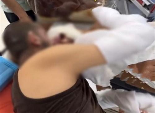巴勒斯坦一對受傷的父子在醫院擔架相遇,兒子安慰爸爸,別害怕,我很好,要堅強。根據最新信息加沙遭到以色列突襲之后,巴勒斯坦受傷的父子在醫院的擔架中相遇,父親掙扎著起身想要去親吻兒子的時候,反而被兒子安慰,爸爸不要害怕我很好,千萬不要害怕,一定要堅強。戰爭是殘酷的,自從巴勒斯坦和以色列之間產生沖突之后,就不斷的有人員傷亡。