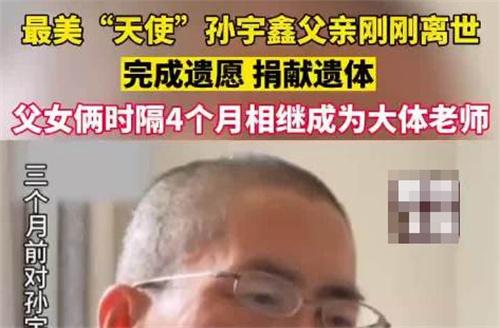 10月14日,媒體發布消息最美“天使”孫宇鑫父親離世捐獻遺體,時隔4個月父女倆相繼成為大體老師的消息也引起網友的關注。人們紛紛留言表示這是人間大愛。