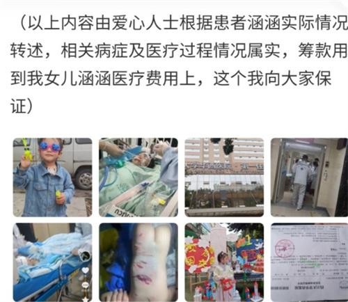 有網(wǎng)友質(zhì)疑究竟是不是家屬本人籌款,針對這個問題記者也采訪了女童的家屬,針對于網(wǎng)絡(luò)上籌款的行為家屬稱因為涵涵受傷的情況非常嚴(yán)重,現(xiàn)在已經(jīng)住進(jìn)了兒童重癥監(jiān)護(hù)室,后續(xù)的治療費用非常高不得已,只有先在網(wǎng)上發(fā)起籌款,希望網(wǎng)友能夠理解我們現(xiàn)在著急的心情。只是想讓孩子快點得到好一點的救治,能夠早點好起來。