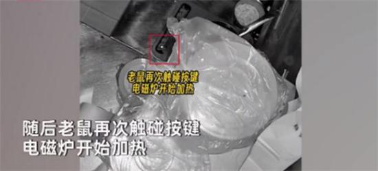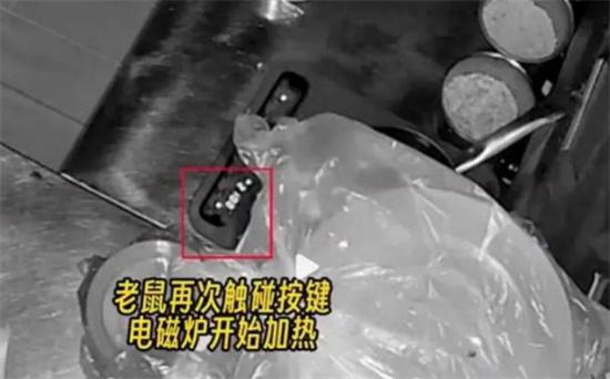 從監(jiān)控視頻中我們可以看到,老鼠從外面直接溜到了店里,開(kāi)始在貨架上尋找食物,發(fā)現(xiàn)電磁爐上有食物殘?jiān)蟊闾松先ァS捎陔姶艩t電源線沒(méi)有斷開(kāi)處于待機(jī)狀態(tài),老鼠不小心觸碰的開(kāi)關(guān),隨后又不小心觸碰了加熱鍵,讓電磁爐開(kāi)始加熱。不久之后電磁爐上的打包材料和食物殘?jiān)桓邷匾?,老鼠也被嚇得逃跑?/p>