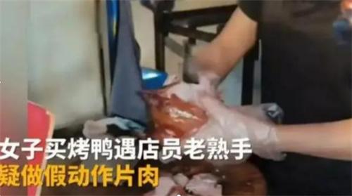 北京時間10月22日,在社交平臺上面出現了一則視頻,引發了網友的關注,一位重慶的女士在烤鴨店購買烤鴨的時候,她親眼看到了店員在片肉過程當中使用了非常快速的一種手法,幾乎是讓人看不清的,而這位女士在拿到自己買的烤鴨的時候,發現肉量甚至根本就不到半只。她認為這名店員的做法是極度的不講誠信,而且非常黑心。