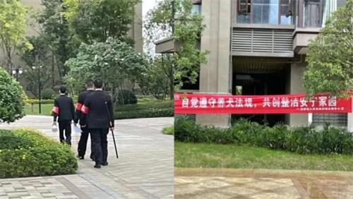 成都崇州恒大西辰綠洲小區,由于近日所發生的狗傷人事件組建專門的巡邏隊,在小區進行巡邏,小區里遛狗的數量明顯減少了很多,多業主出門遛狗時都自覺的牽繩。