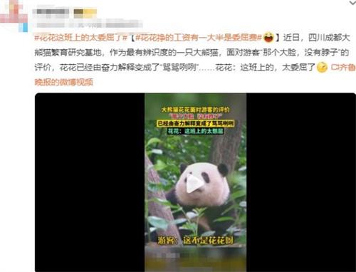 近日,四川成都大熊貓繁育研究基地中,一眾游客圍著大熊貓花花調侃稱,花花沒有脖子,花花聽到游客的調侃聲后向周圍的游客奮力的解釋。對此有網友表示,花花在這里上班簡直是太委屈,恐怕掙的工資有一大半是他的委屈錢。據了解大熊貓花花居住在成都大熊貓繁育研究基地中,花花可以稱得上是這個基地中的一只網紅大熊貓,吸引了很多游客的喜愛和關注。