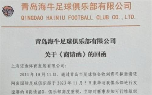 10月24日網(wǎng)上有一份青島海牛對(duì)主辦方的回函,顯示梅西今年第2次中國(guó)行首場(chǎng)比賽可能在海口五源河文體中心進(jìn)行。這份回函稱(chēng)青島海牛俱樂(lè)部非常愿意參加11月5日和邁阿密?chē)?guó)際的友誼賽,在請(qǐng)示相關(guān)主管單位之后,確定主場(chǎng)在海南省海口市五源河文體中心體育場(chǎng)。