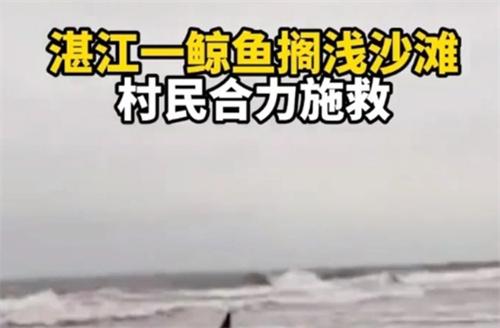 近日廣東湛江一頭鯨魚在海灘上面擱淺,當地市民合力把鯨魚救回大海的視頻引起了人們的關注,這頭鯨魚已經獲救,據了解,這頭鯨魚差不多有3000多斤,體長大概8米到10米。