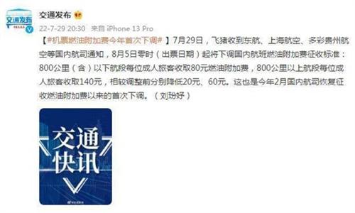 去哪兒接到的航空公司消息顯示,從2023年開始,成人旅客在乘坐航班時,每800公里需要花費60元燃油附加費,對800公里以上航線的旅客,每人收取110元燃油附加費。冬天馬上到來,人們的出行需求也會逐漸下降,相信航空公司的燃油收費標準下調,也會滿足市場需求,帶來穩定增長。飛機燃油附加費是 航運公司根據燃料價格變化設置的一項附加費用,主要是彌補燃油成本。