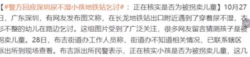 近日關于網上出現了幾張尿不濕小孩以及女子在深圳街頭乞討的照片,在網絡上瘋狂轉發引起了人們熱議,懷疑小孩是不是被人販子拐賣不然為什么會流浪街頭。10月28號下午有知情人士告訴澎湃新聞記者,經過警方核實尿不濕小孩是一名女孩,她的母親是一名殘疾人,老家是江西撫州,家里情況非常的困難,從江西流浪到深圳,目前布吉街道辦、深圳民政部門等都已經介入,希望能夠救助這對母女為他們改善目前的困境。