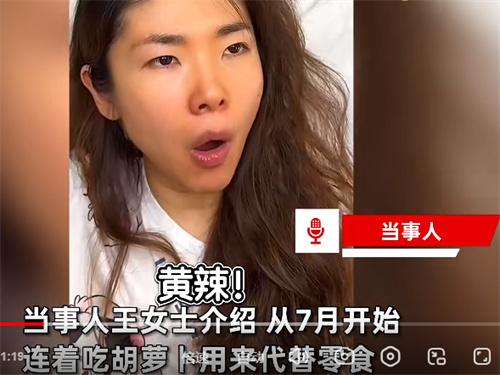 該女子表示進了醫院之后醫生就問哪里不舒服,女子表示是不是自己的肝功出現了問題感覺自己的皮膚特別的黃,后來醫生就問王女士日常生活中是不是特別喜歡吃胡蘿卜。王女士就表示之前為了減肥連續吃了三個月的胡蘿卜,醫生就說那王女士的身體就沒有什么問題,應該是長時間服用胡蘿卜被胡蘿卜染色了,日常生活中一定要多喝水讓自己的新陳代謝變快。在近兩個月內不吃任何有顏色的食物,兩個月左右自己的膚色就能夠正常變回來。